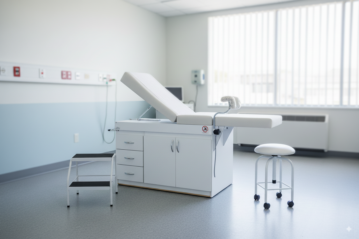 Modelo: Mesa Ginecológica Luxal com Gabinete 2 Portas e 3 Gavetas Peso: 60 kg